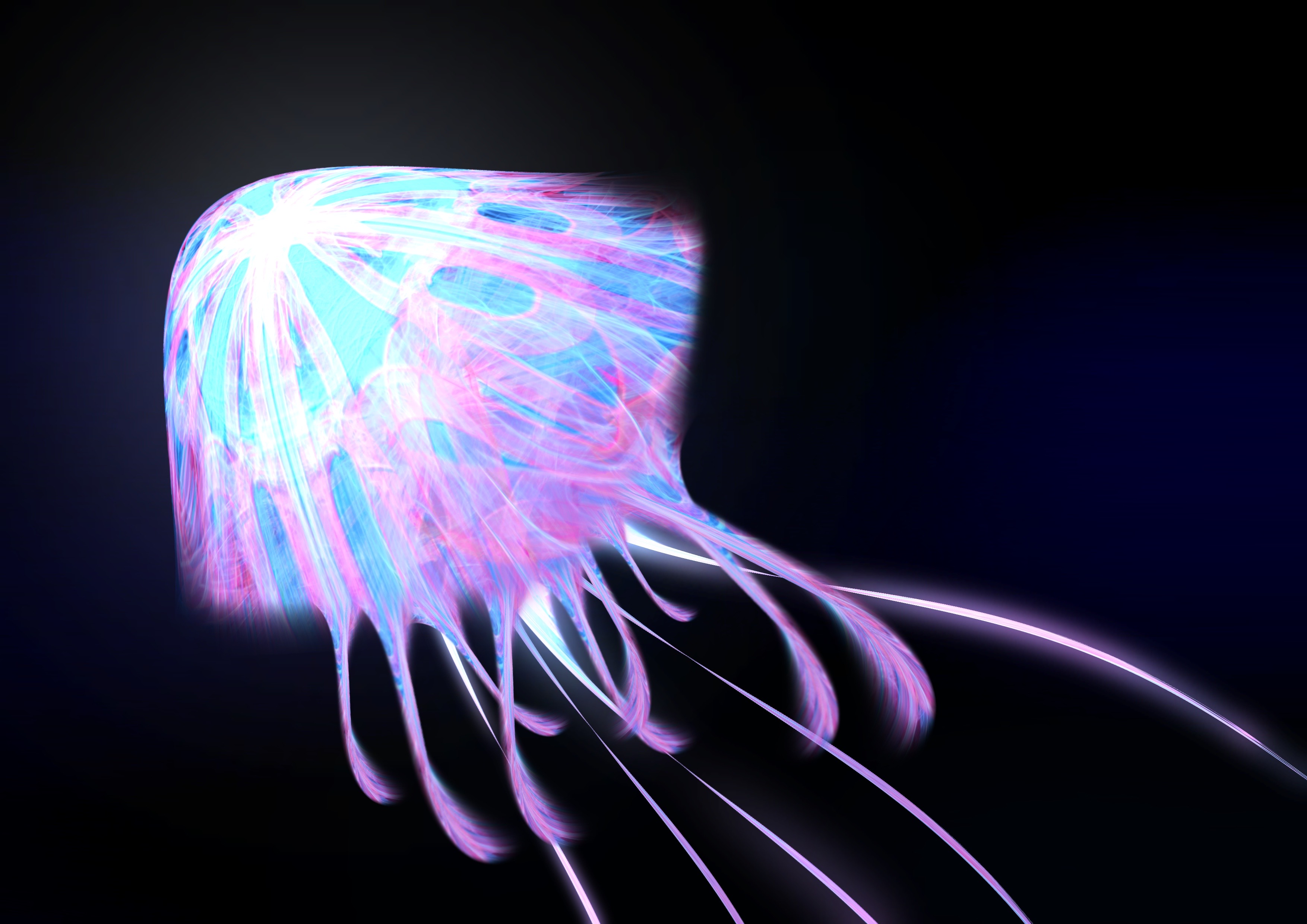 In the dark tranquility of deep waters, a pulse glows beneath the surface a creature shaped by current, light, and mystery. Currentform embodies a hybrid essence: part fish, part energy, all motion. Electric hues ripple across its body like thoughts through water, silent yet powerful. This piece invites the viewer to imagine life not only as biological, but as a waveform fleeting, radiant, and always in flow.