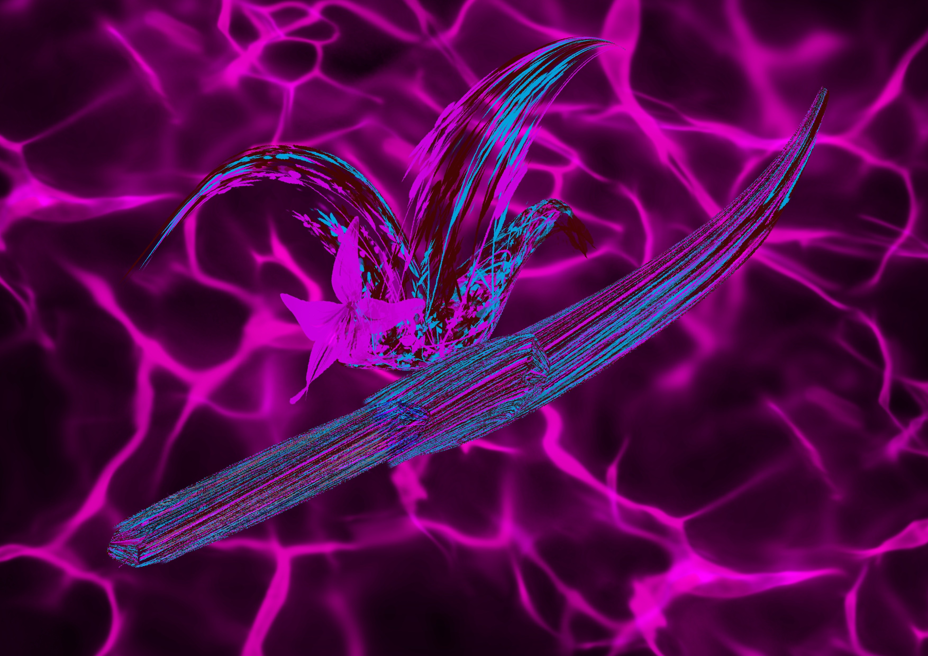 Bloom in Light is a gentle emergence within waves of color and energy. Violet and magenta hues swirl like flowing light, embracing a delicate floral form. This piece speaks of softness with power a feminine presence blooming in silence. A moment of inner opening, captured in radiant stillness.